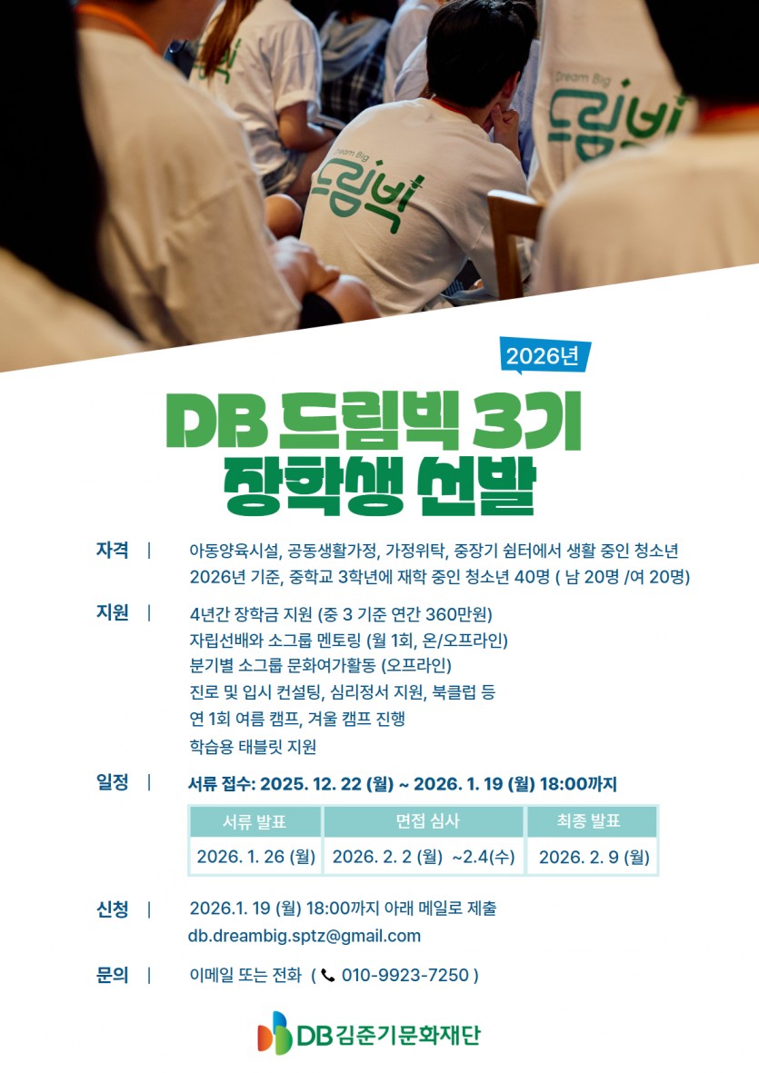 [DB김준기문화재단] DB드림빅 3기 장학생 선발