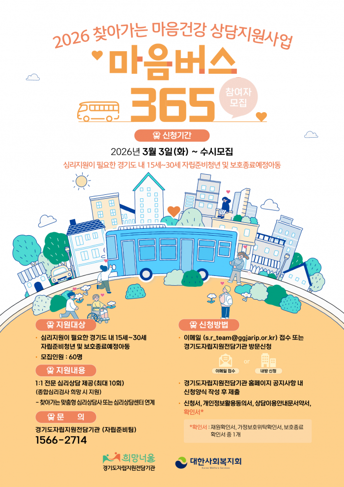 [경기도자립지원전담기관] 2026 찾아가는 마음건강 상담지원사업 '마음버스365' 모집