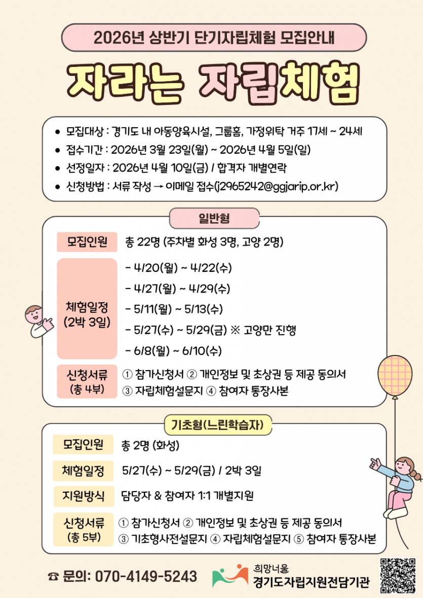 1. 2026년 상반기 단기자립체험 '자라는 자립체험' 프로그램